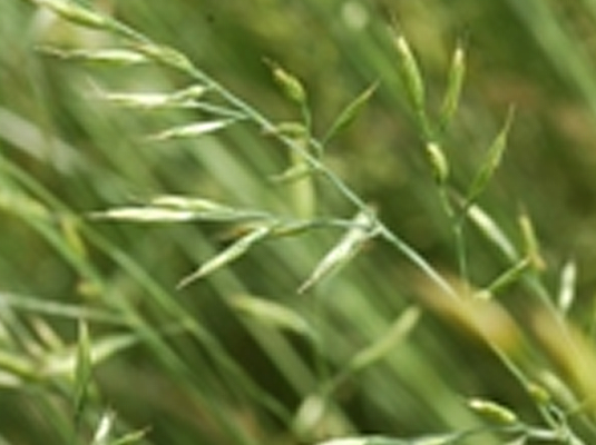 | Owoc | Przeważnie dł. 4-6 mm, plewka dolna posiada na brzegach krótkie włoski i ość, prześwitujące ciemne nasionko, łodyżka dł. 1-2 mm zgrubiała u góry. MTN wynosi 1–1,5 g. Nasionko koloru ciemnobrązowego z brzuszną bruzdą. |