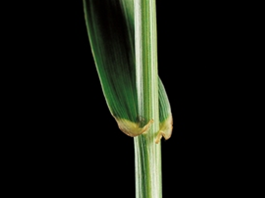 | Liść | Najmłodszy liść zwinięty, pochwa liściowa nie zrośnięta, spodnia strona liścia silnie błyszcząca, krótki, biały z gładkimi krawędziami języczek ,mocne szerokie ostrogi obejmujące łodygę, blaszka liściowa średnio szeroka (ok. 10 mm) jasnozielona do ciemnozielonej . Górna strona wyraźnie bruzdkowana. |