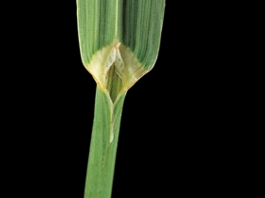 | Liść | Najmłodsze listki zwinięte, blaszki liści otwarte z nieznacznymi rowkami. Liście nieomszone, strona spodnia matowa i ostra. Języczek liściowy krótki, bez uszek. Pochwa liściowa nieomszona, szarozielona, szczelnie zamknięta u nasady blaszki liścia, brzegi zrośnięte. |