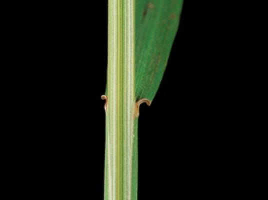 | Liść | Zawiązek liścia zwinięty, pochwa liściowa nie zrośnięta i goła lub słabo owłosiona. Blaszka liściowa szeroka 4–12 mm, słabo bruzdkowana z wyraźnym kilem. Górna strona liścia lekko owłosiona lub goła, dolna strona goła i matowa. Pod światło widoczne są na liściu żółto-zielone linie. Języczek liścia średni do długiego , biały i silnie postrzępiony. Brak uszek. |
