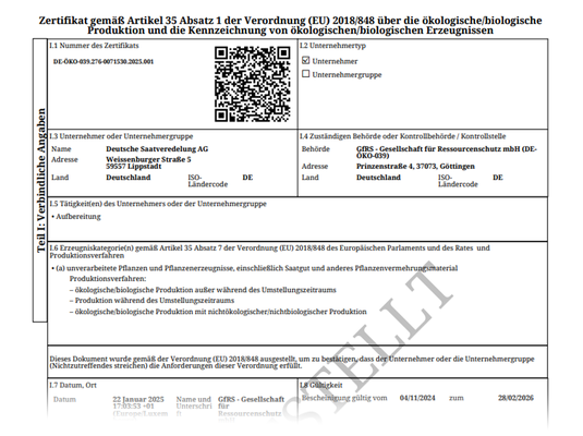 Jesteśmy dystrybutorem nasion ekologicznych. Nasiona oznaczone nazwą bio, eko lub organic hodowane są wyłącznie w specjalistycznych gospodarstwach. Podczas ich produkcji nie używa się sztucznych nawozów, środków chwastobójczych i pestycydów. Istotne jest, aby gleba nie była w żaden sposób skażona. Przepisy dotyczące rolnictwa ekologicznego jasno określają najważniejsze zasady. Wśród nich znajduje się zakaz stosowani GMO, zakaz stosowania promieniowania jonizującego oraz zakaz stosowania hormonów. Proces produkcji nasion jest stale nadzorowany przez jednostki certyfikujące.