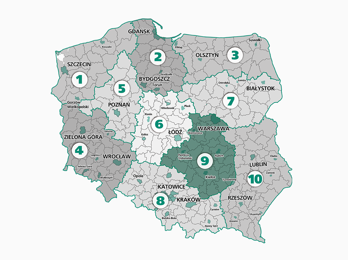 bełchatowski, białobrzeski, buski, grodziski, grójecki, jędrzejowski, kazimierski, kielecki, konecki, kozienicki, lipski, łowicki, opatowski, opoczyński, ostrowiecki, otwocki, pabianicki, pajęczański, piaseczyński, pińczowski, piotrkowski, pruszkowski, przysuski, radomski, radomszczański, rawski, sandomierski, skarżyski, skierniewicki, sochaczewski, starachowicki, staszowski, szydłowiecki, tomaszowski, warszawski, wieluński, włoszczowski, zwoleński, żyrardowski,