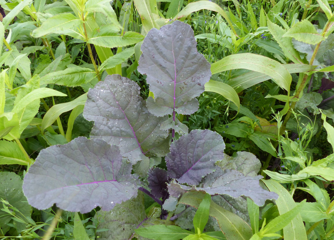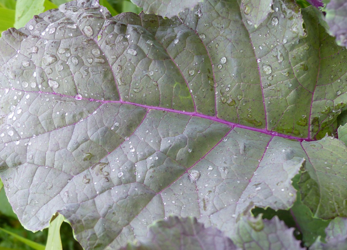 - liście długie i szerokie o zabarwieniu czerwono-fioletowym z silnym nalotem woskowym