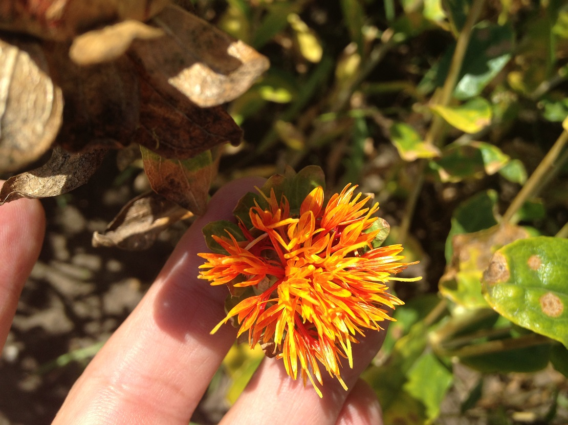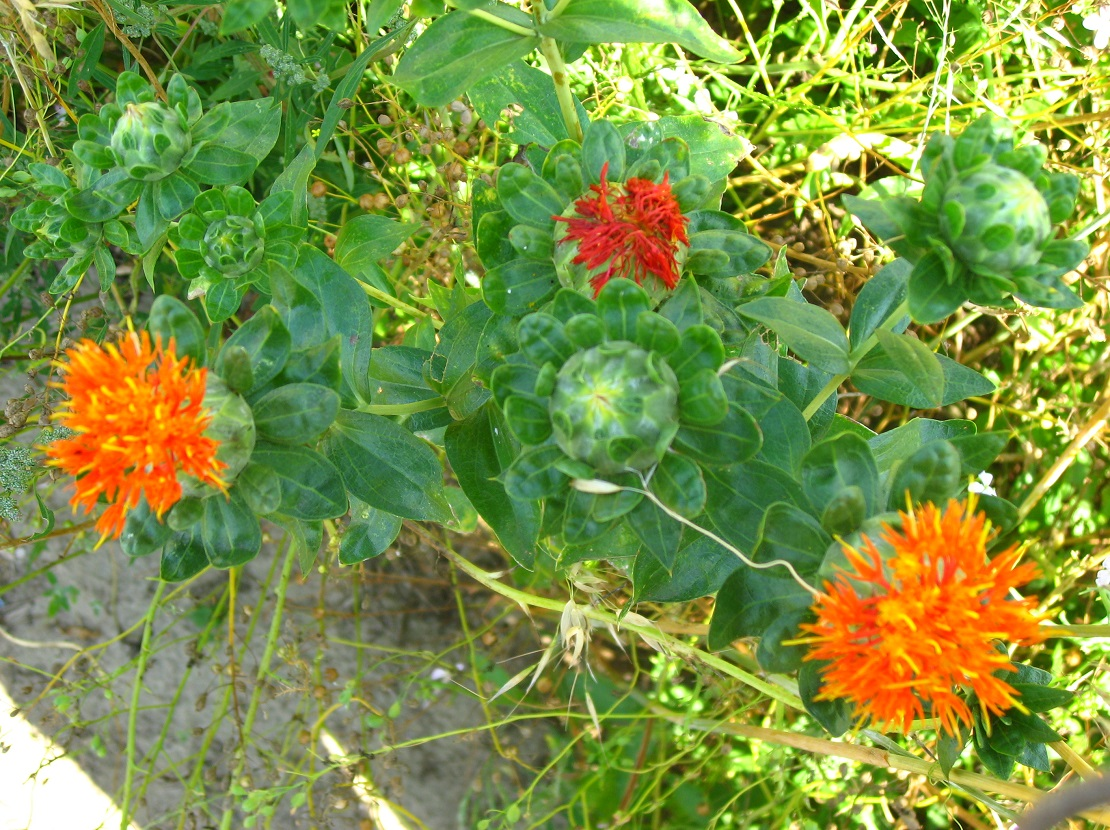 - kwiaty: koszyczki w kolorze żółtym lub czerwonym osłonięte kolczastymi liśćmi